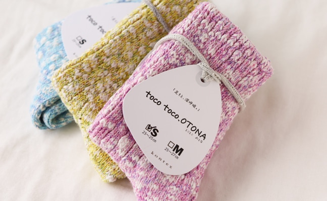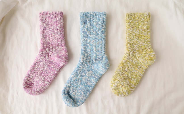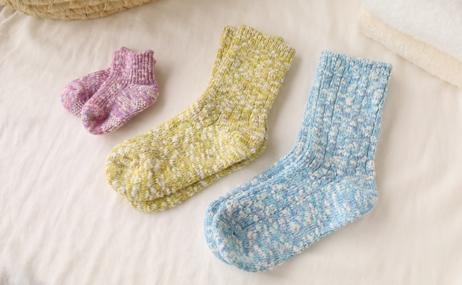 色や太さの異なる複数の糸を組み合わせることで、一足ごとに異なる豊かな表情と、
