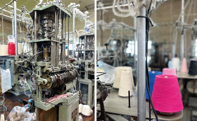 国内でも数少ない旧式の編み機で、糸に負担をかけずゆっくり丁寧に編み上げることで、