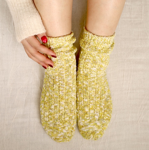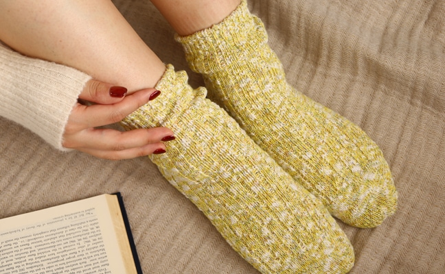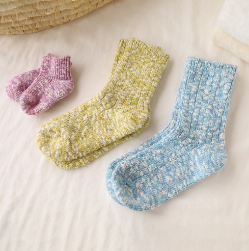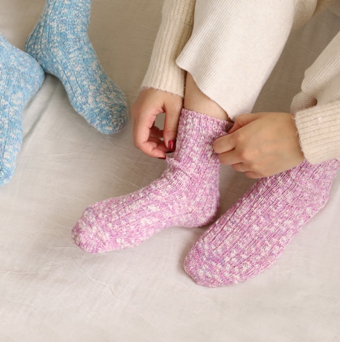 表情豊かなミックス糸が織りなす優しい色合いと温もりは、まるで手編みのような特別な一足です。