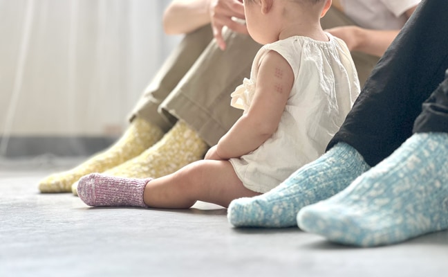 赤ちゃんの小さな一歩を見守るように、この靴下が